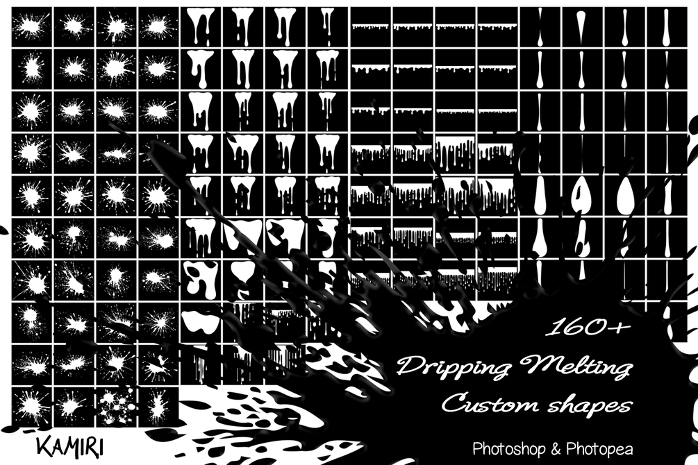 160 Melting Dripping Splatter Custom Shapes for Photoshop & Photopea